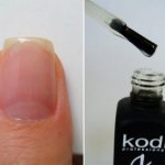 - Покроем поверхность ногтей базой под гель лак и заполимеризуем ее в ультрафиолетовой (2 минуты) или led (30 секунд) лампе.