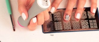 Делается такой маникюр в основном на наращенных ногтях, потому как таким образом он более эффектно смотрится. Чем больше длина пластины и глаже ее поверхность, тем ярче и изысканнее будет результат. Узор на ногтях создается путем тиснения переводной фольги на специальном геле.