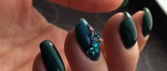 To work with foil on nails, you need to prepare scissors, glue (if it is sheet material), tweezers, and a pusher. If you decide to create a design using regular nail polishes, it is enough to have one shade that matches gold, such as green, black or burgundy, and a topcoat to seal the result. When working with gel polishes, you will need a base, main and additional colors, a top (can be matte), various decor (broths, rhinestones, gel paint).