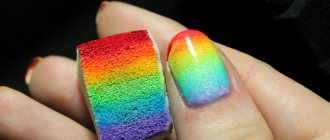 A slightly complex, but very beautiful style of covering a knitted manicure is obmre. You can combine from one to three colors on one nail, or you can gradually lighten the tone of one color by painting your nails one at a time.