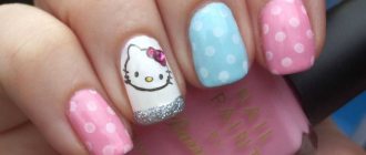 - Nail design. This procedure is carried out after a hygienic manicure and consists of artistic decoration of the girl’s nail plates. It cannot be called particularly necessary and useful; it can be postponed. But if the baby wants to be even more like her mother or emphasize her own individuality, she can make her first drawing on her nails at the age of 5