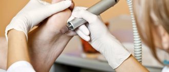 Using a hardware version of pedicure, nails and feet are treated with a special machine, which polishes off unevenness, corns, rough skin, and eliminates other problems.