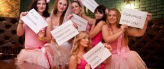 On other pieces of paper there will be words indicating those items that the groom will have to provide in case of failure. For example: “champagne”, “one hundred kisses for the bridesmaid”, “2000 rubles”, etc. We will tell you further about which modern bride price to choose.