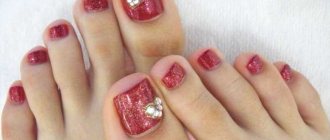 Подчеркнуть изящество и ухоженность ваших ножек можно с помощью педикюра, который украшен камушками и стразами.