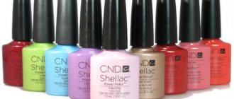 - Шеллак. Универсальное средство со свойствами разных основ для наращивания. Подобно другим гелевым основам, предполагает закрепление под УФ лампой (в ногтевой сушилке). Держится не менее 2 недель, включая объемный дизайн на поверхности с наложением камешков, страз, прочих включений.